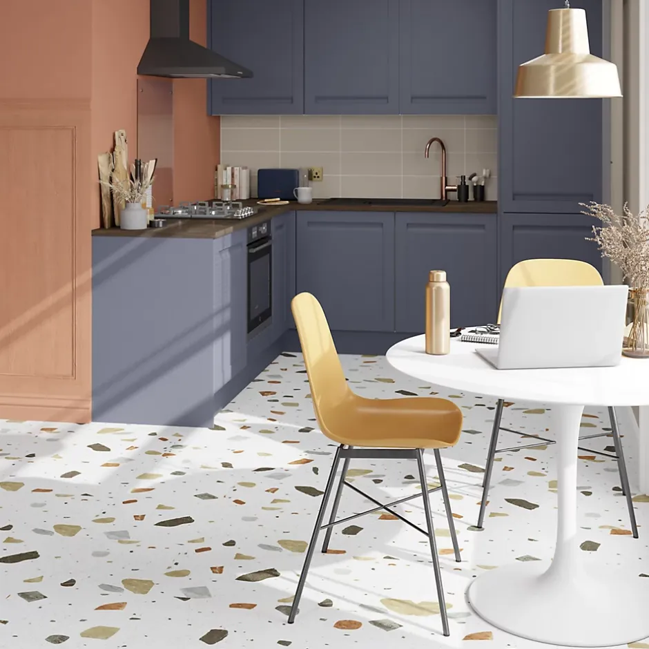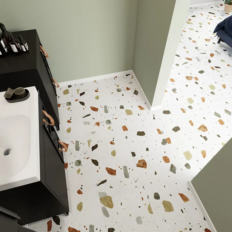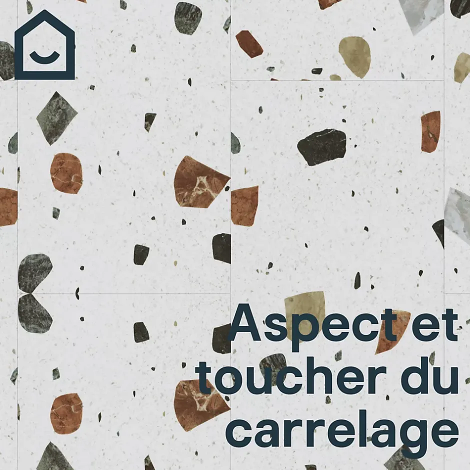 - La surface texturée imite l’aspect et le toucher d’une véritable mosaïque Terrazzo.