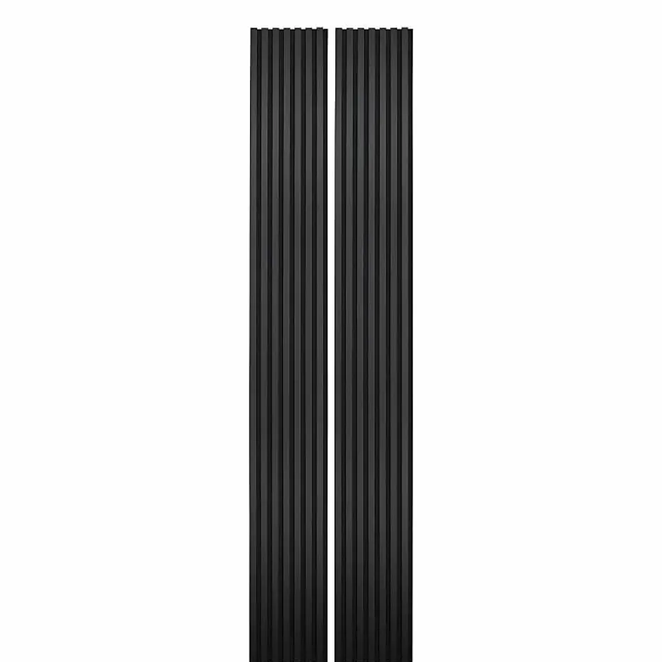Découvrez le panneau bois dans sa décoration la plus radicale avec le tasseau noir sur feutrine noire. Un ton sur ton qui renforcera le caractère et la modernité de votre décoration intérieure.Ce panneau en tasseaux de bois noir est idéal pour intégrer en toute discrétion votre écran TV ou, à l’inverse, jouer le contraste avec les meubles de la pièce qui les accueillera.Adaptés aux murs comme aux plafonds, ces panneaux de lattes de bois sur feutrine en polyester sont également d’excellents alliés pour améliorer considérablement l’acoustique et l’insonorisation de votre pièce.Présentation du panneau mur tasseau bois noirCe panneau en tasseaux noirs mesure 250 cm de hauteur pour 30 cm de largeur. L’épaisseur totale est de 19 mm. Il est constituée d’un support en feutrine de polyester noire sur lequel sont agrafés les tasseaux noirs en MDF. Chaque latte présente une section de 27 mm x 11 mm. Ils sont écartés de 16 mm.Avantages du tasseau noir- Avec sa finition noire, le panneau tasseau bois revêt sa version la plus contemporaine.- Tout en empruntant une finition ton sur ton, ce panneau décoratif révèle un effet 3D intéressant entre les lamelles satinées et la feutrine extra mate.- Facile à poser, ces panneaux peuvent être vissés ou collés.- Leur conception intelligente vous permet une pose sans raccord visible.- Grâce à leur structure en relief, ce revêtement mural améliore l’acoustique de votre pièce en atténuant la réverbération du son sur les murs.- La feutrine de haute qualité atténue également les sons provenant de l’extérieur.