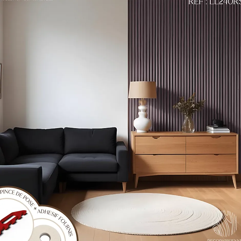 INSTALLATION FACILE GRÂCE AU GABARIT DE POSETransformez facilement vos espaces avec ce kit tasseaux adhésif chêne foncé, livré avec un gabarit de pose pratique.Grâce à ce système ingénieux, l’installation est rapide et accessible à tous, sans avoir besoin d’outillage complexe. Vous pouvez ainsi créer un panneau bois sur mesure, adapté aux dimensions exactes de vos murs, en toute simplicité.DURABILITÉ EXCEPTIONNELLEFabriqués avec des matériaux de qualité supérieure et un savoir-faire artisanal, ces panneaux sont conçus pour durer.Profitez d’une performance acoustique optimale et d’une beauté intemporelle pendant de nombreuses années.PLUSIEURS TAILLES ET COULEURSCe panneau tasseau allie modernité et chaleur grâce à son aspect bois naturel. Il s’intègre parfaitement dans tous types d’intérieurs, qu’il s’agisse d’un salon, d’une chambre ou d’un espace professionnel.Décliné en six coloris élégants : chêne clair, chêne foncé, noyer naturel, frêne gris, cerisier naturel et chêne naturel.Chaque teinte est disponible en deux formats : 1,2 m² ou 2,4 m², pour concevoir un habillage mural à la hauteur de vos projets. Il s’adapte à toutes les ambiances et envies décoratives.CARACTÉRISTIQUES TECHNIQUES Composition du kit : 24 tasseaux, 1 gabarit de pose, 1 rouleau adhésif double face extra fort multi surface Dimensions (Par tasseau) : 1,3 x 2,6 x 240 cm (e x l x L) Couleur : Chêne foncé Finition : Plaqué Mode de fixation : À coller Matériau principal : MDF Revêtement : Plaqué bois Surface par panneau : 2,4 m²