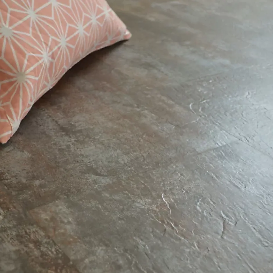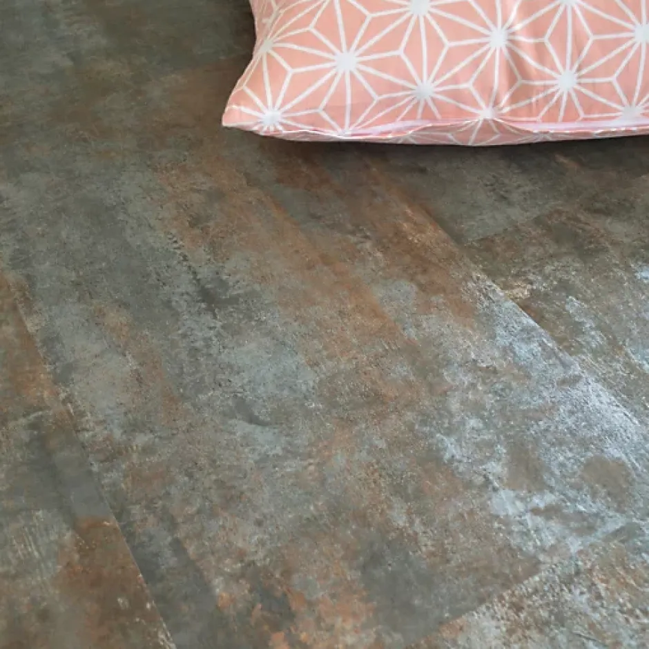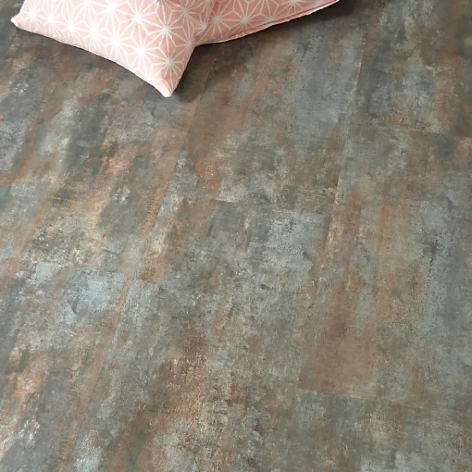 Paquet de 8 Dalles sol PVC Clipsables Mix and Match Click 5G – Acier vintage Pose flottante sans colle. Convient aux pièces humides. Silencieux et confortable. Couche d’usure : 0,55 mm. Résistant et facile d’entretien. Longueur : 61 cm – Largeur : 30,5 cm – Épaisseur totale : 5 mm Ne contient ni plomb ni métaux lourds ni formaldéhyde. Pose possible sur un revêtement de sol existant (ancien carrelage, parquet…). Le type de pose flottante des dalles clic permet la pose sur un support plus irrégulier qu’en pose collée, même sans ragréage (3mm ss règle de 2 m). • Résistant à l’humidité, convient aux pièces d’eau : salle de bain et cuisine. Sur les surfaces pouvant dépasser une température de 50° au sol (par exemple derrière une baie vitrée exposée au soleil), il est recommandé une pose collée avec avec une colle polyuréthane ou époxy sans utilisation de sous-couche. Acclimatation du produit avant la pose : Conservez le produit dans l’emballage fermé pendant au moins 24 heures à température ambiante avant de commencer à le poser dans votre pièce. • Chainfrein : Non • Chauffage par le sol : Oui • Classe COV : A+ • Classement feu : Bfl-s1 (ancienne norme M3) • Entretien facile • Épaisseur totale : 5mm • Poids d’un paquet : 14,7 kg • Pose : Flottante, sans colle, système Clic 5G • Résistance au glissement : DS (Coef. de glissement µ >= 0,30) • Surface par paquet : 1,49 m²