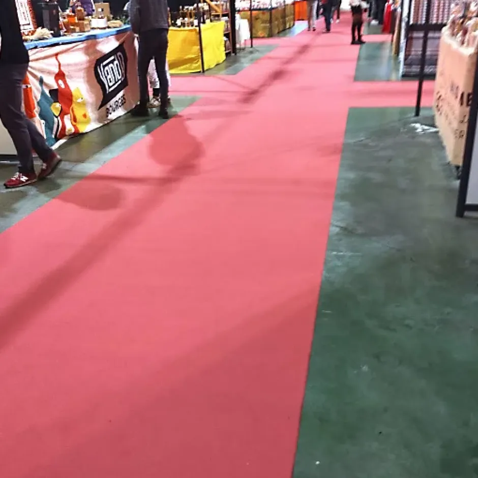 Moquette Stand Event est idéale pour un usage temporaire (salons, foires, expositions, mariage…).Référence Beaulieu Real : Podium – 3075Une moquette aiguilletée premier prix très fine et très économique. Conçue à 100% en polypropylène avec un velours ras, cette moquette est antistatique. La moquette Stand Event Rose Candy est idéale pour un usage temporaire en intérieur comme en extérieur (scénographie, salons, foires, expositions, mariages…). C’est une moquette spécialement adaptée aux événements professionnels. Disponible en une large palette de couleur, elle habillera avec simplicité et élégance le sol de vos stands et espaces d’exposition.- CLASSE COV : A+- CLASSEMENT FEU : Bfl-s1 (ancienne norme M3)- COMPOSITION FIBRE : 100% Polypropylène- DOSSIER : SBR et Carbonate de calcium- EPAISSEUR TOTALE : 2,6 mm- FABRICATION : Belgique- POIDS TOTAL : 700 g/m²- RESISTANCE AU GLISSEMENT : DS- TYPE : Aiguilleté- USAGE : Stands, salons, cloisons, magasins, expositions, scènes de spectacle, scénographies, établissements publics…Tolérance sur les dimensions : +/- 3%IMPORTANT :Nuances de couleurs de bain sur nos moquettesMerci de noter que nous ne pouvons pas garantir une même teinte de couleur sur nos différentes largeurs de rouleaux.Information à bien prendre en considération si vous souhaitez faire un raccord, dans une même pièce, à partir de 2 largeurs de rouleaux différentes.