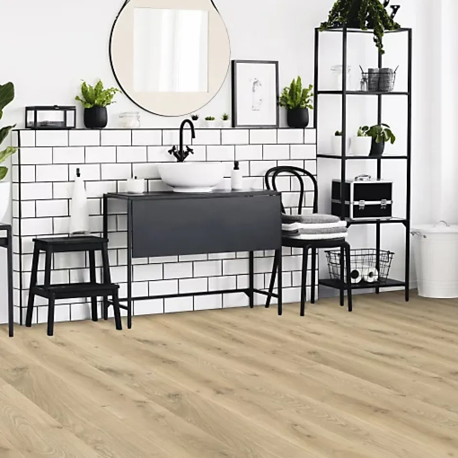 Paquet de 8 lames de parquet stratifiéConvient aux pièces humides (cuisine, toilettes). Lame large avec chanfreins et pose système Clic 5G.Compatible sol chauffant, résistant et facile d’entretien.2.131m² par paquet. Qualité Suisse.Garantie 35 ans en usage résidentiel.Non compatible avec notre ancienne référence Parquet Stratifié KronoSwiss Chêne Castle AquaPearlZones à grande fréquentation nécessitant une résistance au trafic modérée à élevée : magasins, showrooms, restaurants, hôtels, écoles…Peut être nettoyé avec une serpillère humide en évitant d’utiliser trop d’eau. Protection de 48h contre les incidents liquides domestiques et les «accidents» de nos amis les bêtes.Grande résistance à l’abrasion, aux rayures et aux chocs.Un mouillage excessif doit être évité.- Antistatique : Oui- Chanfrein : Sur les 4 côtés- Chauffage par le sol : oui (jusqu’à 26°C, système à eau uniquement)- Classe COV : A+- Classe d’abrasion : AC5- Classement européen : Usage Public et Commercial – Classe 33 : Trafic intense (magasin, couloir, bureau open-space)- Classement feu : Bfl-s1 (ancienne norme M3)- Comportement électrostatique : ≤ 2Kv- Dimension des lames : 138 x 19,3 cm- Épaisseur totale : 8 mm- Fabrication : Suisse- Garantie : 5 ans en usage commercial intensif, 35 ans en usage résidentiel- Gonflement d’épaisseur : ≤ 8%- Nombre de lames par paquet : 9- Poids d’un paquet : 14,50 kg- Pose : Flottante – sans colle – système clic 5G- Résistance aux rayures : Oui, MSR-A2- Résistance aux chaises à roulettes : Oui- Résistance thermique : 0,059 m² K/W- Solidité de surface : 1.25N/mm²- Solidité des couleurs : Blue wool scale ≥ 8, Grey scale ≥ 4– Surface par paquet : 2,131 m²- Usage : Chambre, Restauration, Cuisine, Hôtellerie, Toilettes, Commercial et professionnel, Bureau, Salon, Commerce
