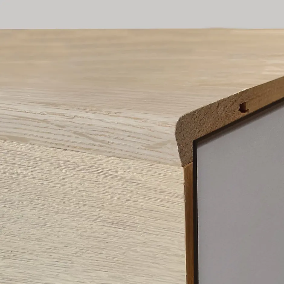 Nez de marche Chêne Nez de marche pour parquet 14mm d’épaisseur Nez de marche en bois pour sol Matière : Chêne Dimensions : Long. 2m Largeur de la barre 70mm Ep. de la barre 22mmPour parquet de 14mm d’épaisseur Finition : Brut