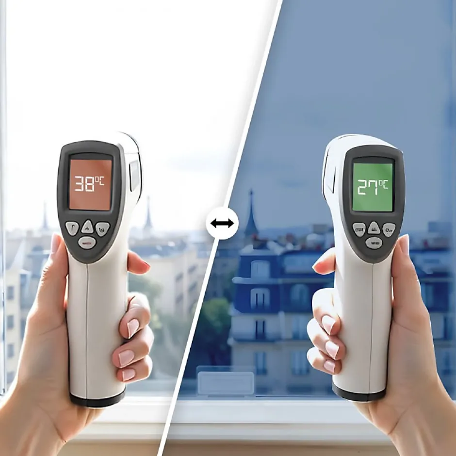 Le film miroir est idéal pour lutter contre le vis-à-vis extérieur, tout en conservant la vue depuis l’intérieur. Il permet donc de voir sans être vu. En plus de protéger des regards indiscrets, celui-ci est également efficace contre la chaleur et contre les rayons UV. Pourquoi choisir un film miroir vitrostatique repositionnable ? Le film effet miroir vitrostatique, est idéal pour s’adapter aux saisons climatiques. Du fait de son effet miroitant, en été, il va permettre de rejeter la chaleur extérieure et donc de diminuer les températures intérieures. Cependant, l’hiver il peut être très agréable de laisser entrer les rayons du soleil afin de réchauffer une pièce. Grâce au miroir sans tain électrostatique, il est donc possible de l’appliquer l’été et de le retirer l’hiver ! Attention, pour un double vitrage supérieur à 1,2 m², il est fortement conseillé d’avoir recours à une pose en extérieur. En effet, la pose intérieure sur une grande superficie de vitre, risquerait de causer un choc thermique dû au rejet de chaleur et cela engendrerait un éclat du vitrage. Calcul du mètre² = Largeur x Hauteur Comment choisir un film miroir sans tain ? Le choix de l’intensité de la teinte du film miroir sans tain se fait selon la distance du vis-à-vis à protéger. Plus le film est teinté et donc foncé, plus celui-ci est efficace pour un vis-à-vis de prêt. L’effet miroir et son jeu de balance des lumières Le film anti vis-à-vis repositionnable fonctionne grâce à un jeu de balance des lumières. C’est-à-dire que l’effet miroir se produit du côté où la luminosité est plus forte. En théorie, la journée, l’effet miroir fonctionne donc du côté extérieur, cependant, dès la nuit tombée, la lumière extérieure étant plus faible que la lumière intérieure, l’effet miroir s’annule et le film ne protège plus des regards indiscrets.