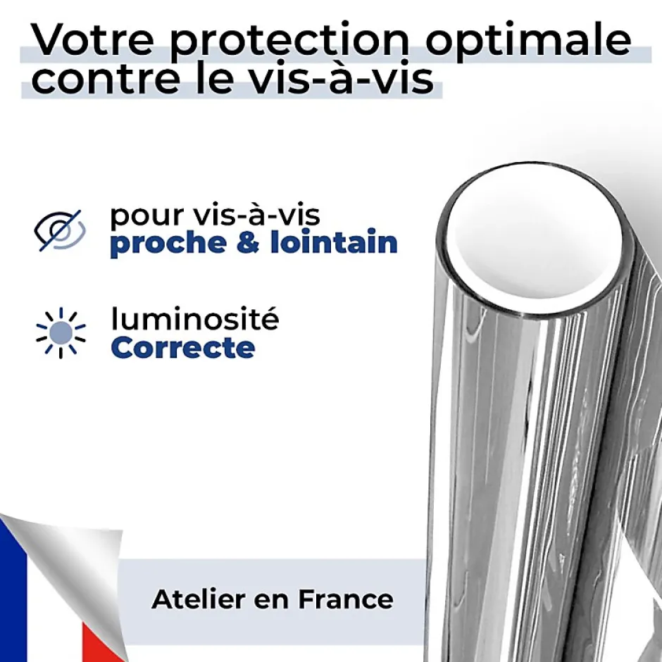 - Film Effet Miroir Adhésif pour Fenêtre – Permet de lutter contre le vis-à-vis extérieur, tout en conservant la vue depuis l’intérieur