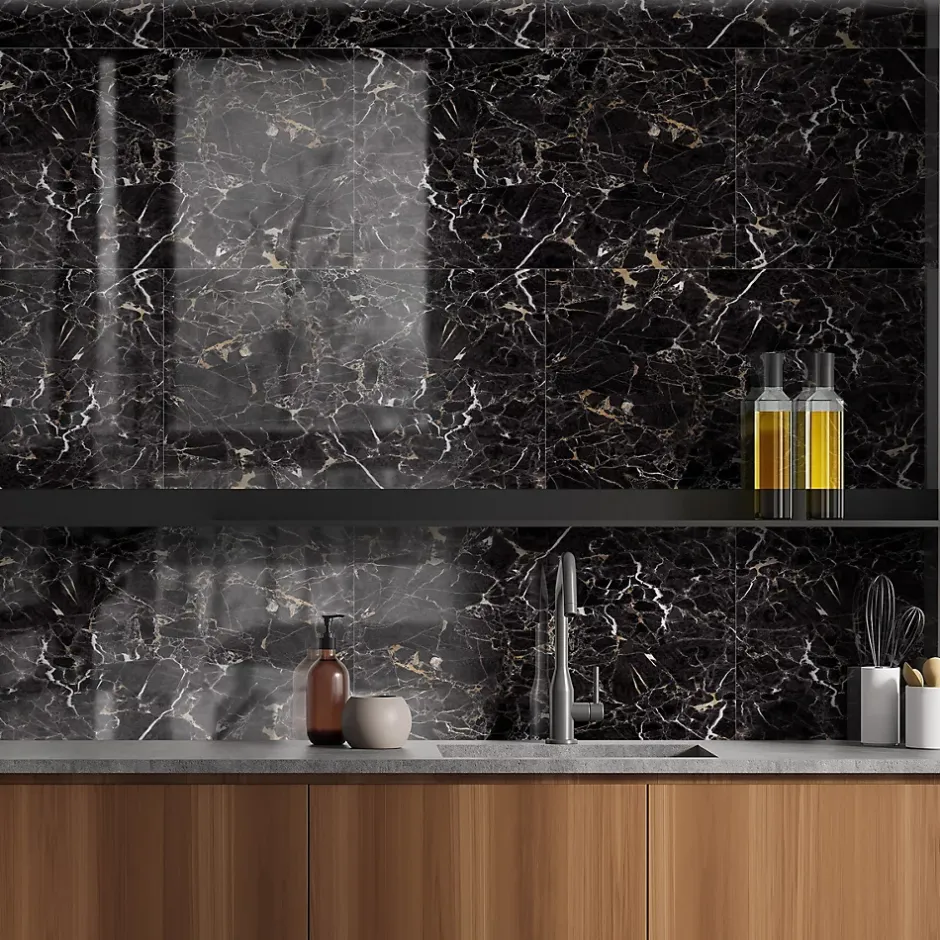 Dalle PVC Dumawall+ Gloss Tavira noir brillant 37,5 x 65 cm