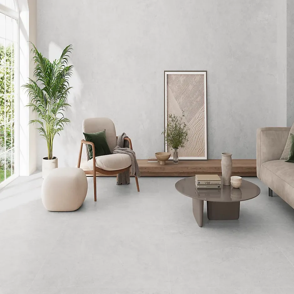 Carrelage sol et mur intérieur en grès cérame émaillé effet pierre gris mat L.60 x 60 cm x ép.8,5 mm, Ecoceramic Basilea