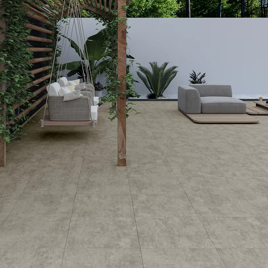 Le carrelage Bauha d’Ecoceramic, en format carré 60 x 60 cm, offre un élégant effet béton gris anthracite perle mat, idéal pour créer une terrasse ou un espace extérieur moderne et lumineux. Sa surface émaillée assure une bonne résistance aux taches et à l’usure quotidienne, tandis que son adhérence élevée garantit une utilisation sécurisée, même par temps humide. Avec sa composition en grès cérame de 9 mm et son classement UPEC U4P3E3C2, il résiste parfaitement au gel et aux variations climatiques. Rectifié pour un rendu soigné aux joints fins, il convient aux murs comme aux sols extérieurs. Fabriqué en Espagne, il allie qualité et esthétique contemporaine.