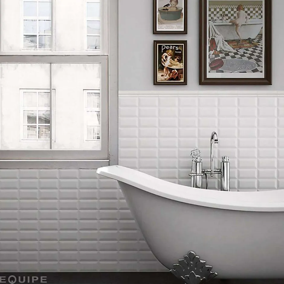 Eiffel art construction Carrelage mur métro parisien relief uni blanc mate 10×20 cm METRO WHITE