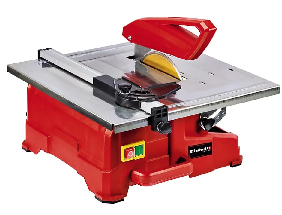 Plateau de travail inclinable en acier inoxydable avec équerre graduée (0 – 45°)Bac à eau intégré pour le refroidissement par eau du disquePieds anti-dérapants pour une bonne stabilitéButée parallèle avec graduations pour des coupes droites précises Butée d’angle réglable (-45° – 45°) pour des coupes d‘ongletsPoignée pour faciliter le déplacement Le capot de protection du disque à tronçonner assure la sécurité Avec un disque à tronçonner au diamant et une cléEnroulement du câble pour un rangement impeccable CARACTÉRISTIQUES TECHNIQUES :Alimentation : 220-240 V | 50 HzPuissance max. (S2 | S2time) : 800 W | 10 minRégime à vide : 2950 tr/min.Hauteur de coupe max. 45° : 14 mmHauteur de coupe max. 90° : 34 mmDisque à tronçonner au diamant : Ø180 x ø25.4 mmInclinaison du disque à tronçonner : 45°Dimension du plateau de travail : 395 x 385 mm