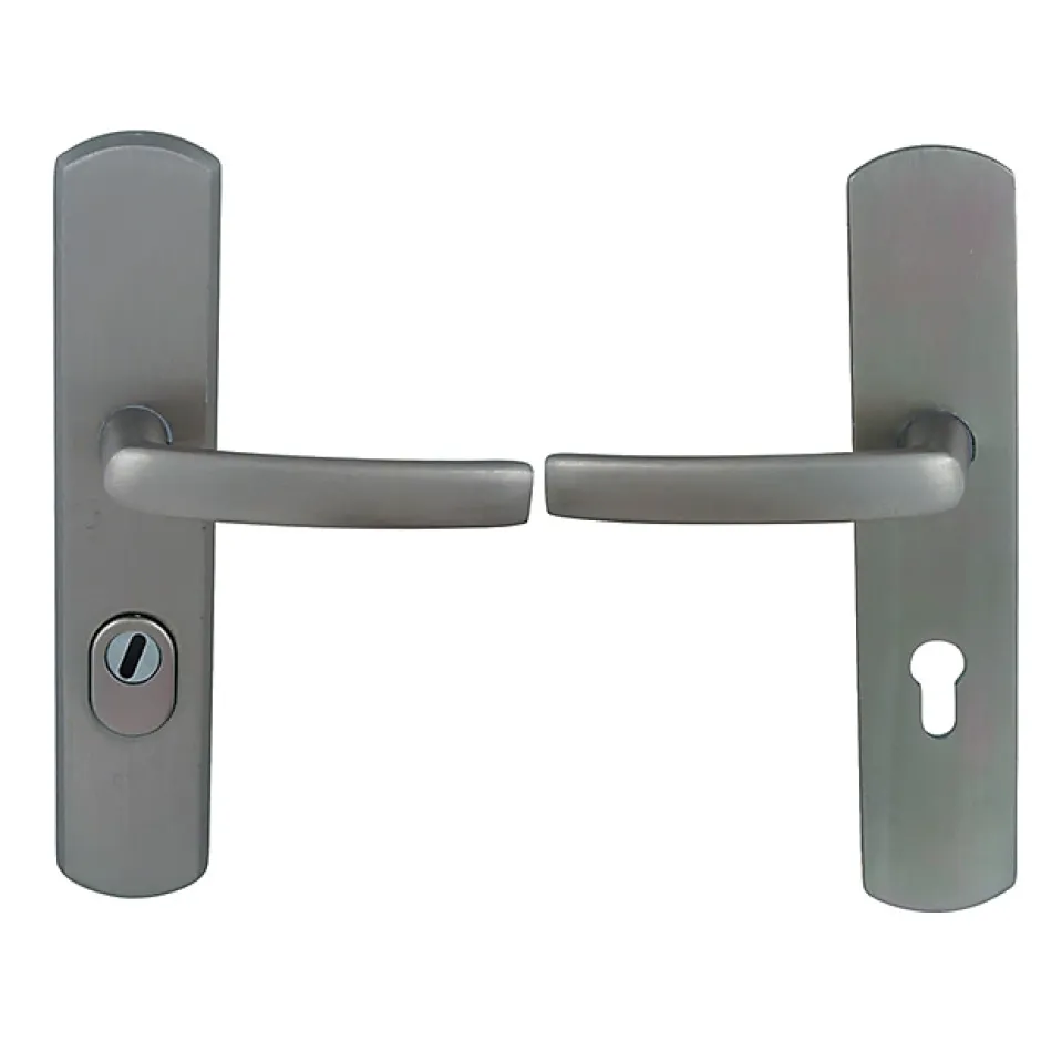 Ensemble poignée de porte sécurité Argent entraxe 195