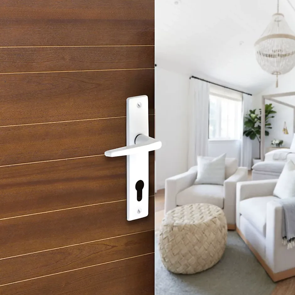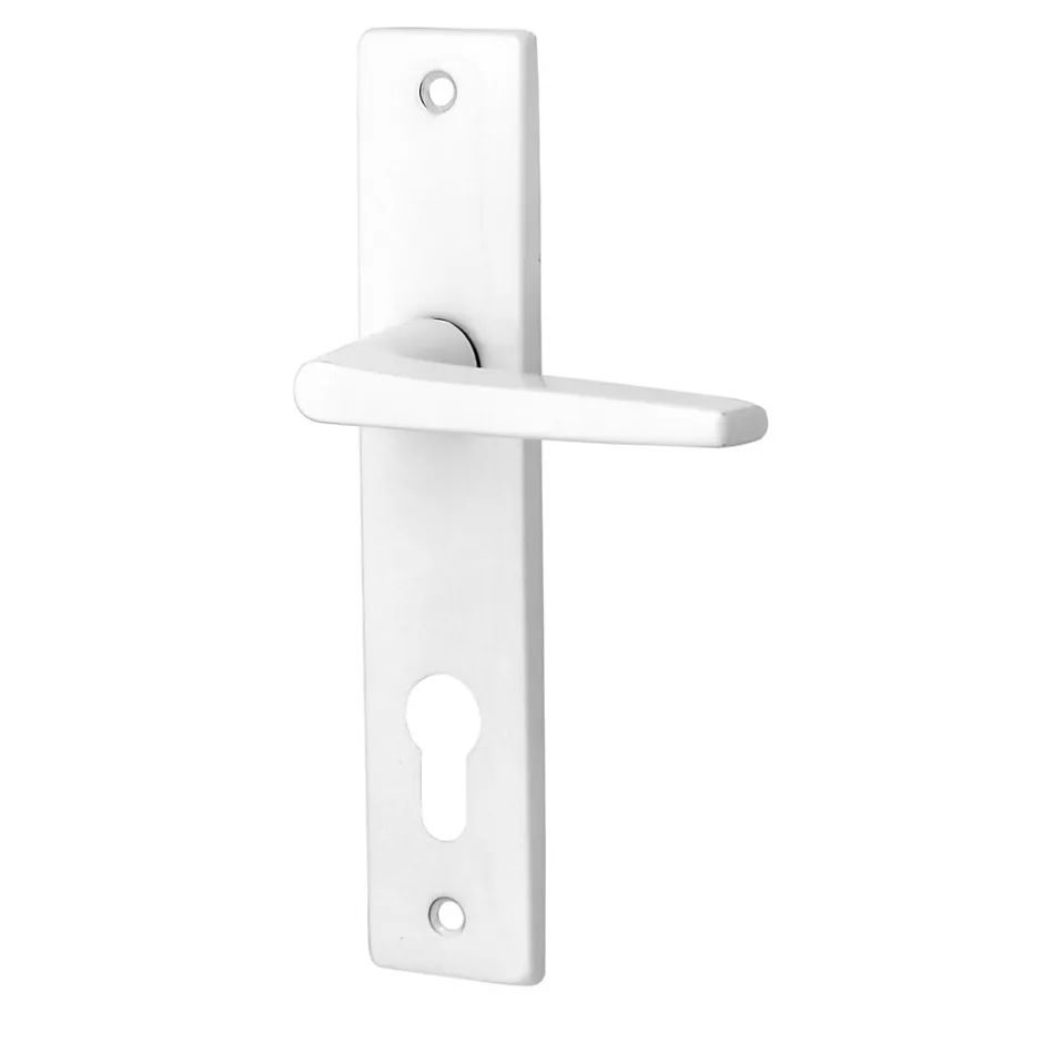 Ensemble poignée sur plaque cylindre rectangulaire Colan satin blanc L.106mm x l.39.8mm entraxe 165mm