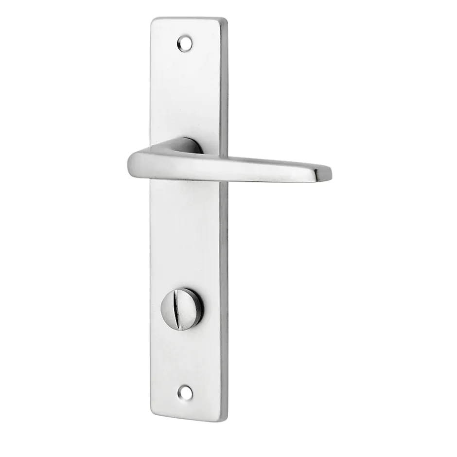 Ensemble poignée sur plaque rectangulaire à condamnation Colan effet argenté satin gris L.106mm x l.39.8mm entraxe 165mm