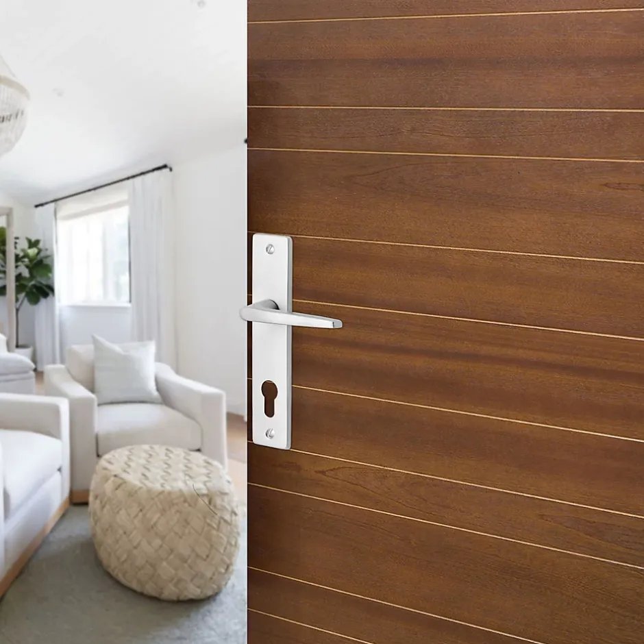 Ensemble poignée sur plaque rectangulaire Colan effet argenté satin gris chromé L.106mm x l.39.8mm entraxe 165mm
