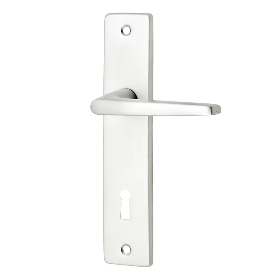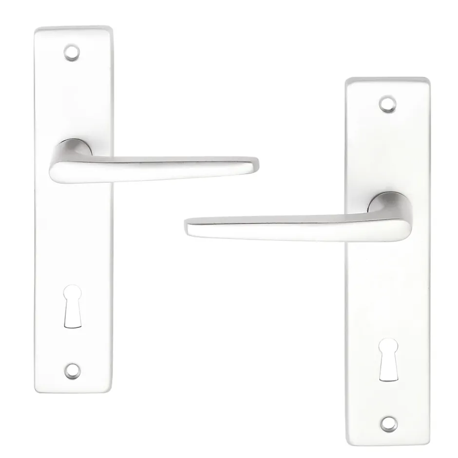 Ensemble poignée sur plaque rectangulaire serrure Colan effet argenté satin gris L.106mm x l.39.8mm entraxe 165mm