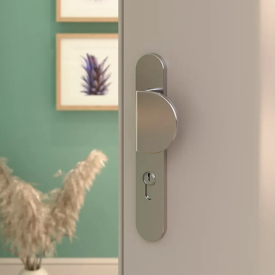 - Elle possède une largeur de plaque étroite et un col long pour une installation et une utilisation faciles sur les portes avec moulures