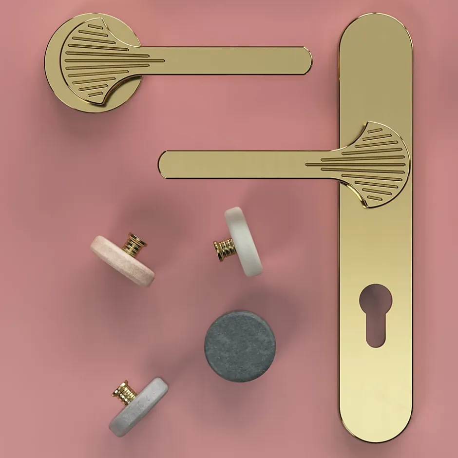 Ensemble poignée sur plaque rond GoodHome Rubian effet laiton doré L.130mm x l.40mm entraxe 195mm