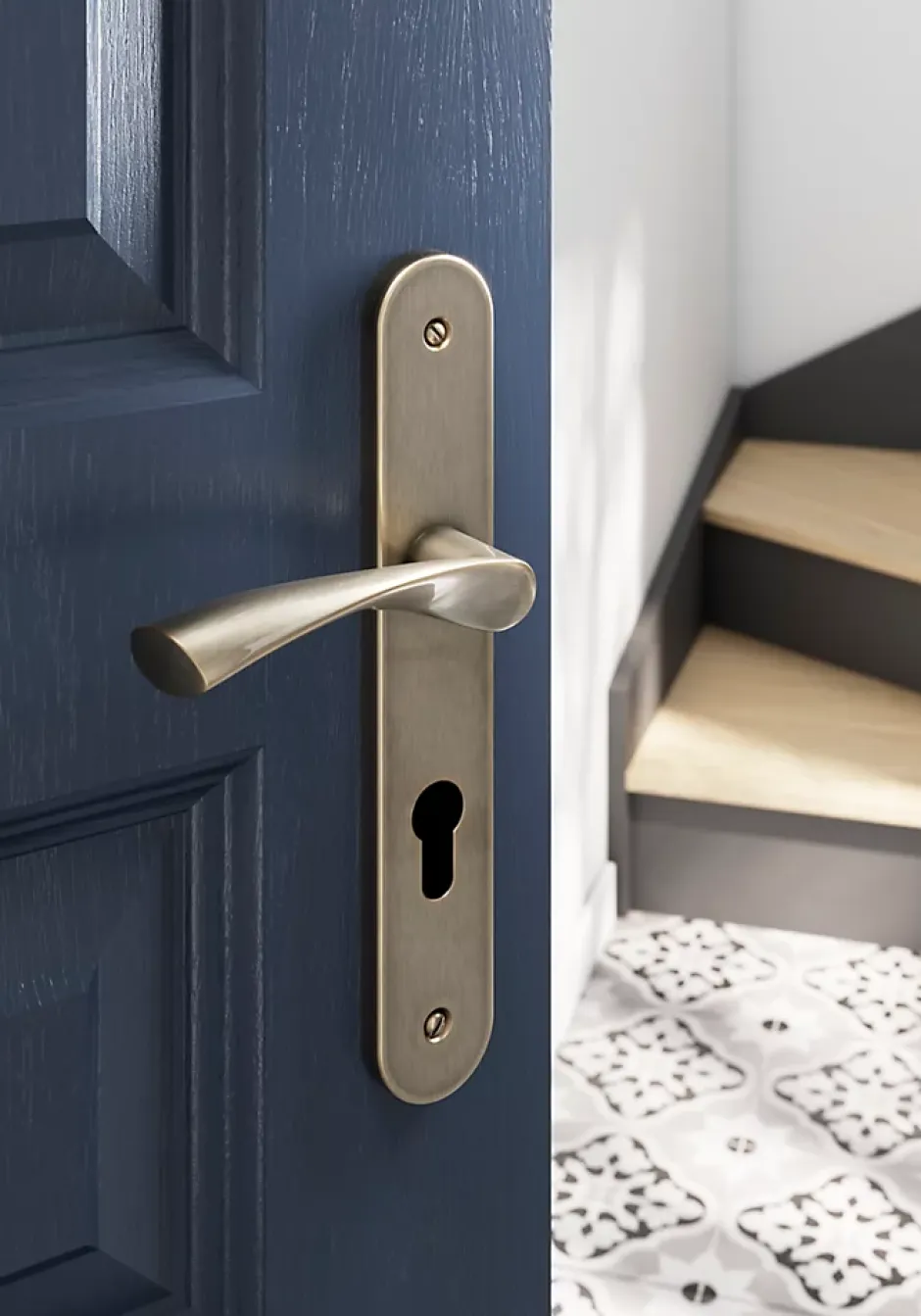 - Poignée de porte tendance sur plaque offrant une touche décorative à votre porte