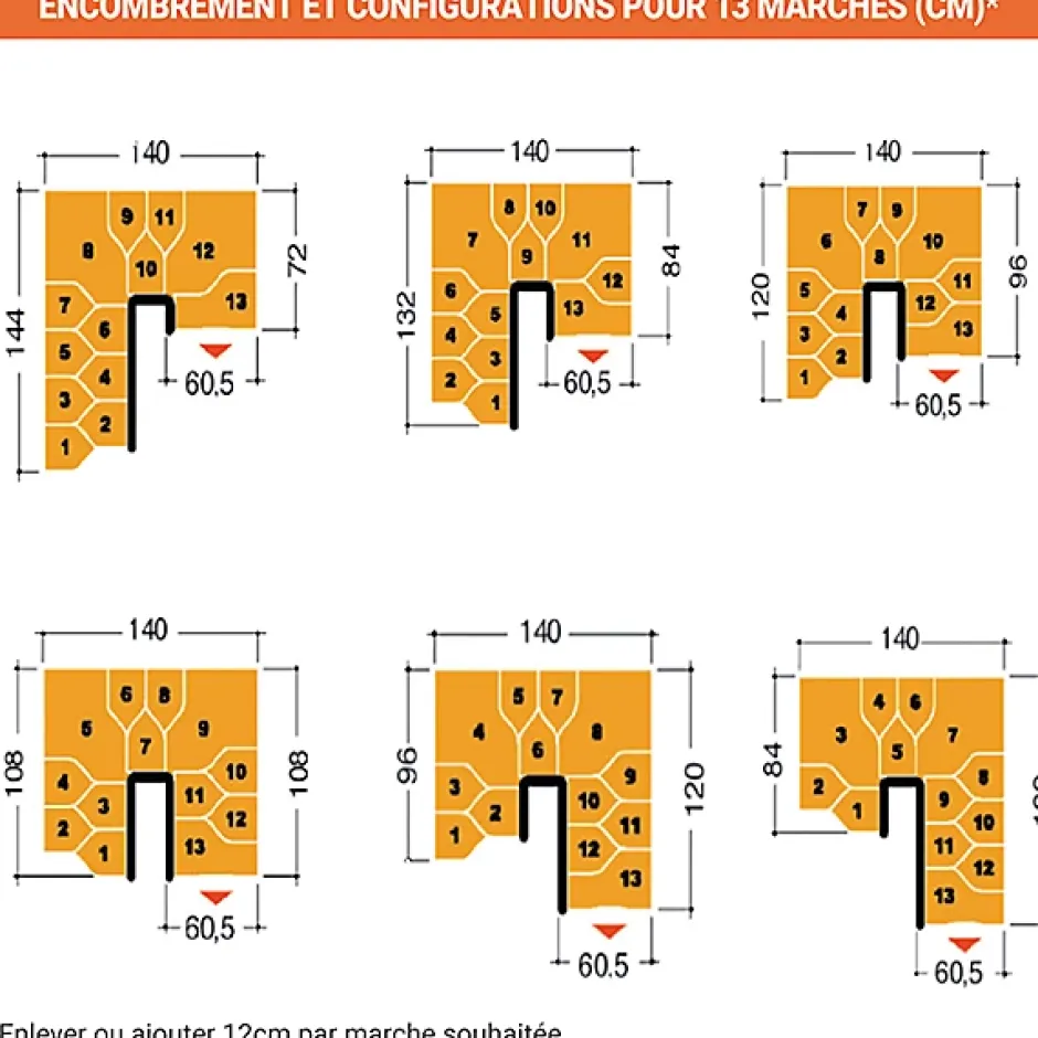Escalier 2 quart tournant 9 marches – Hauteur à franchir de 2.01 à 2.37m – Largeur 61cm – Couleur naturel et blanc –Matisere