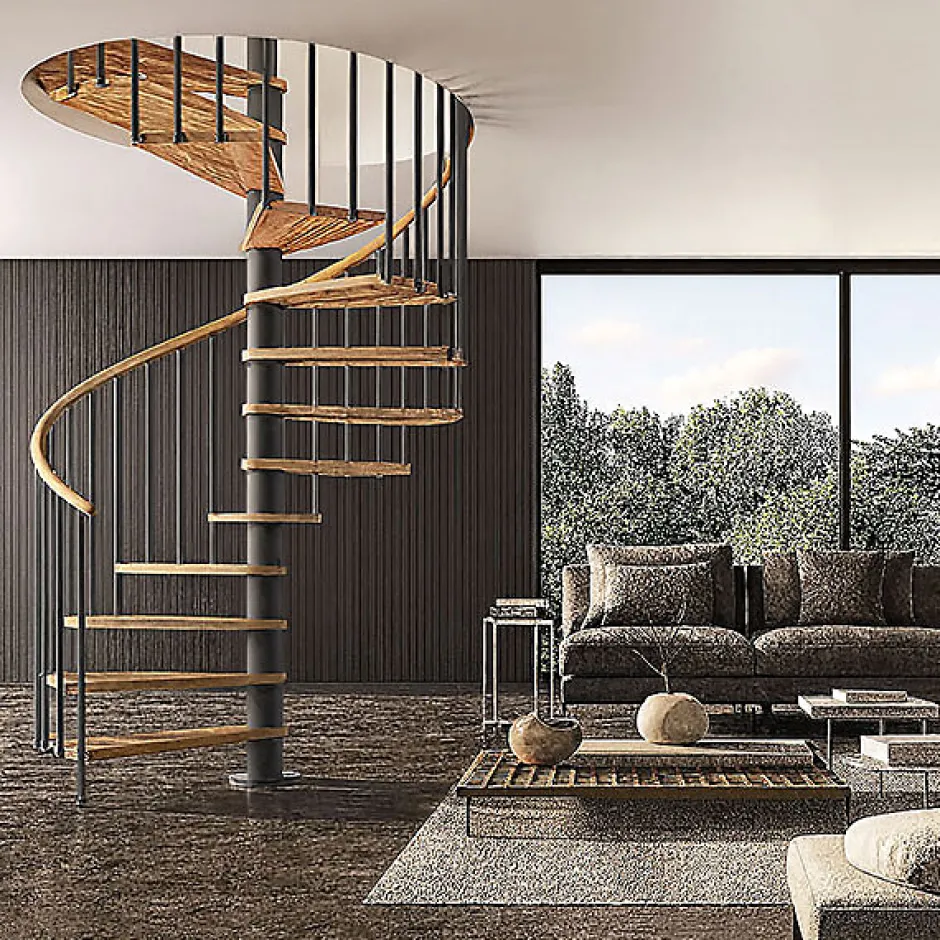Escalier colimaçon 11 marches - Haut. à franchir 2.26 à 2.64m - Diam. 140cm - Struct. grise / marches naturel- Trémie ronde --Matisere Discount