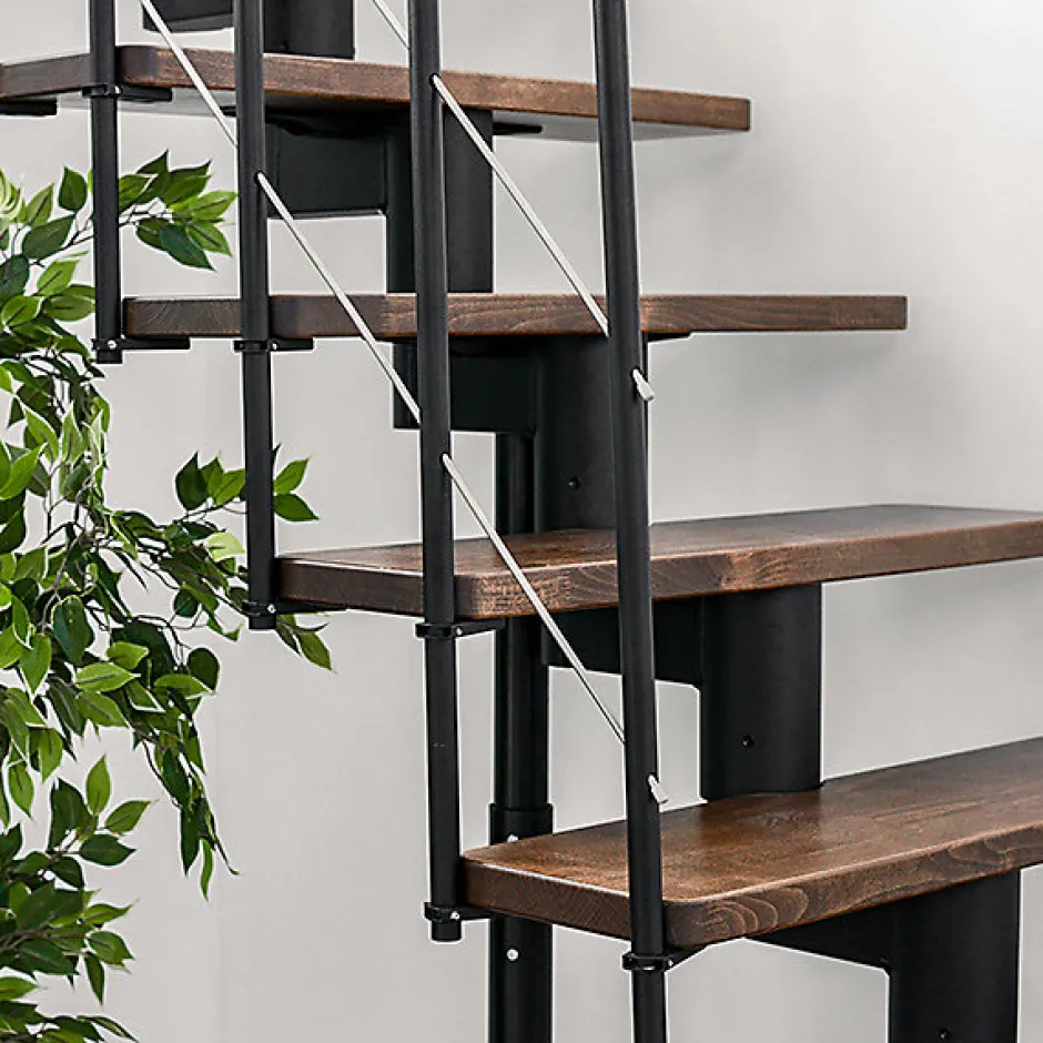 Escalier droit 14 marches – Hauteur à franchir 2.97 à 3.60m – Largeur 80cm – Structure grise et marche noyer – COMFO80/I/GN-14-Matisere Hot