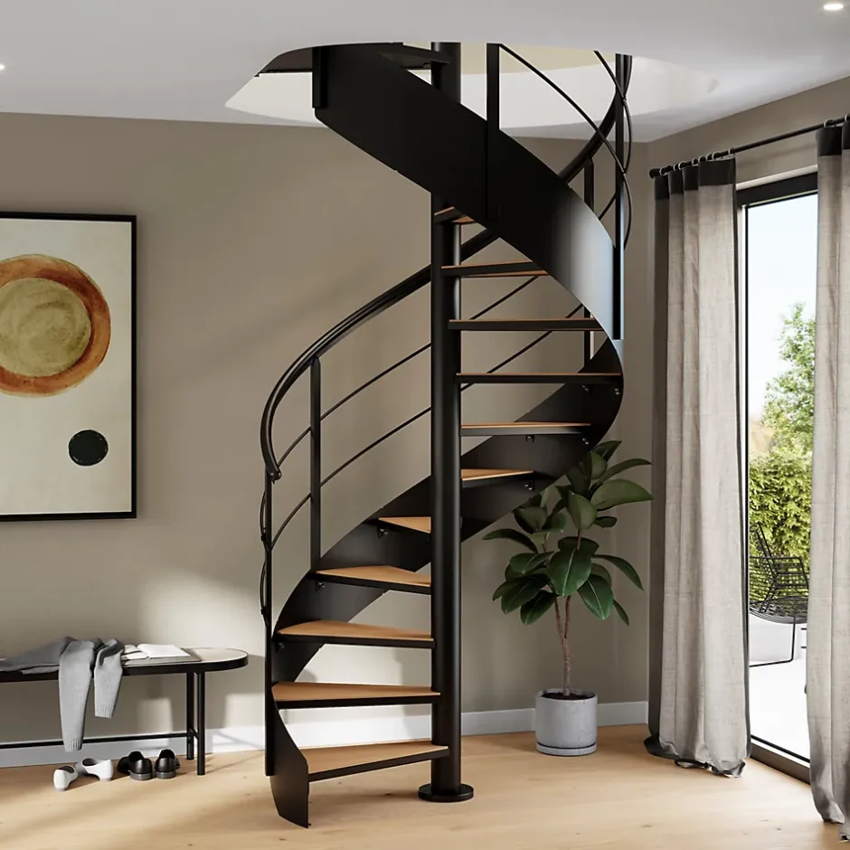 Escalier hélicoïdal FORTIA hêtre et acier noir 13 marches Carilo tournant droit