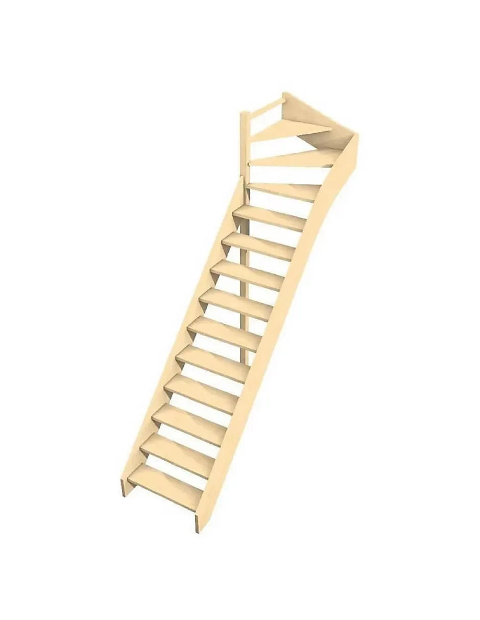Escalier quart tournant haut livré en kit, hauteur 280 cm. 14 marches, largeur 80 cm.