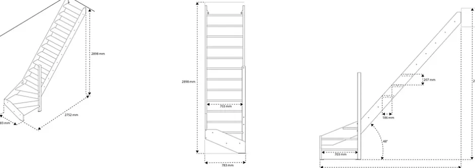 Escalier quart tournant droit Fortia hêtre coloris naturel 13 marches Siderno sans contremarches