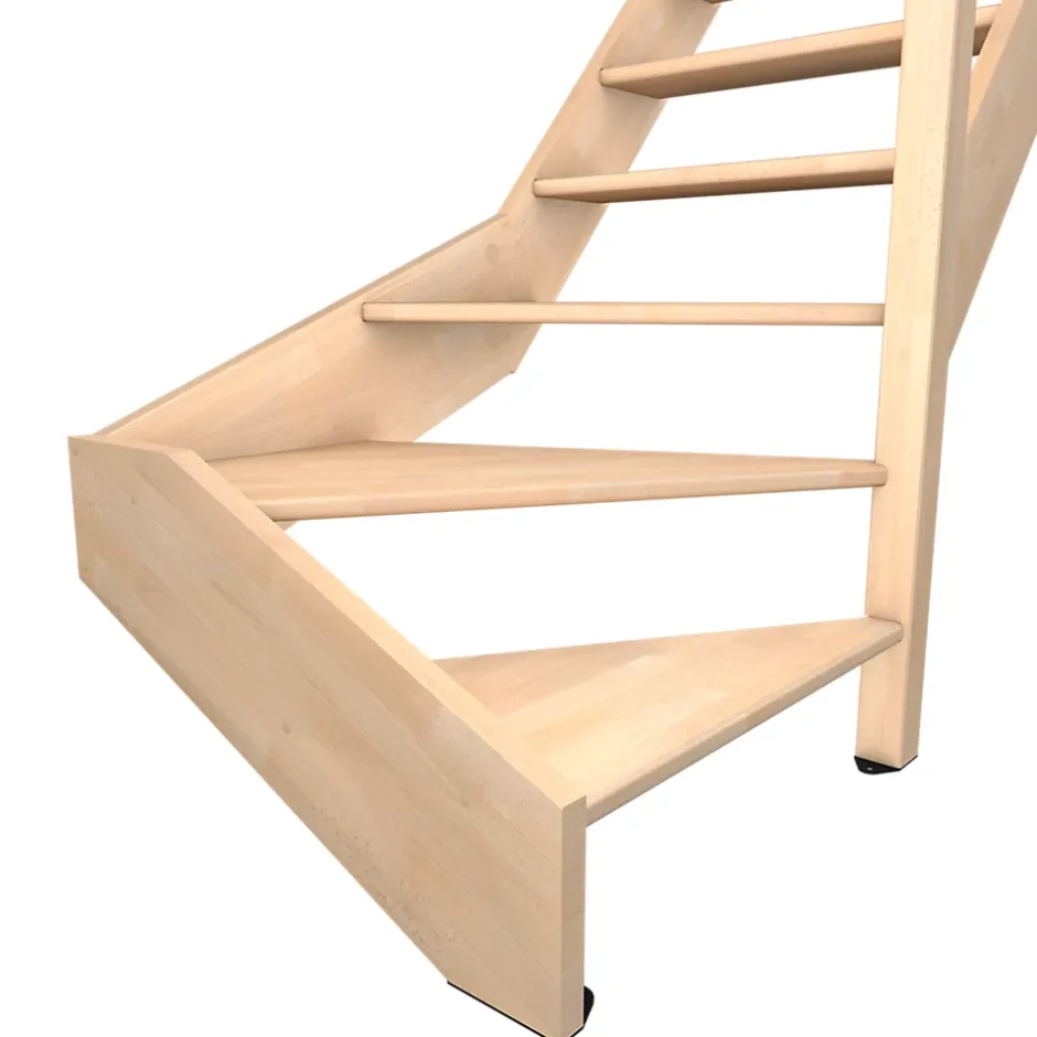 Escalier quart tournant gauche Fortia hêtre coloris naturel 13 marches Siderno sans contremarche