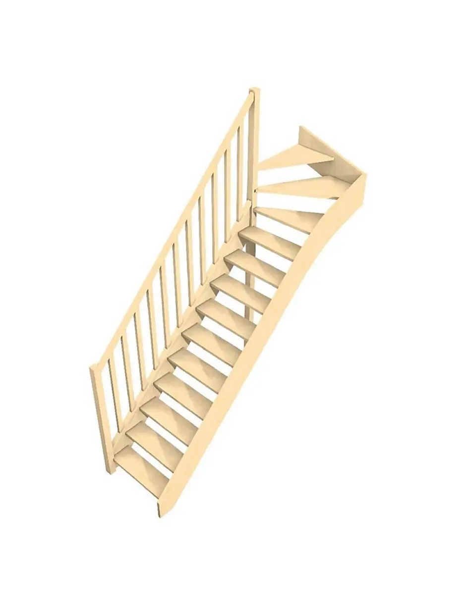 Escalier quart tournant livré en kit. trémie conseillée 85 × 260 cm minimum. Disponible avec ou sans rampe.