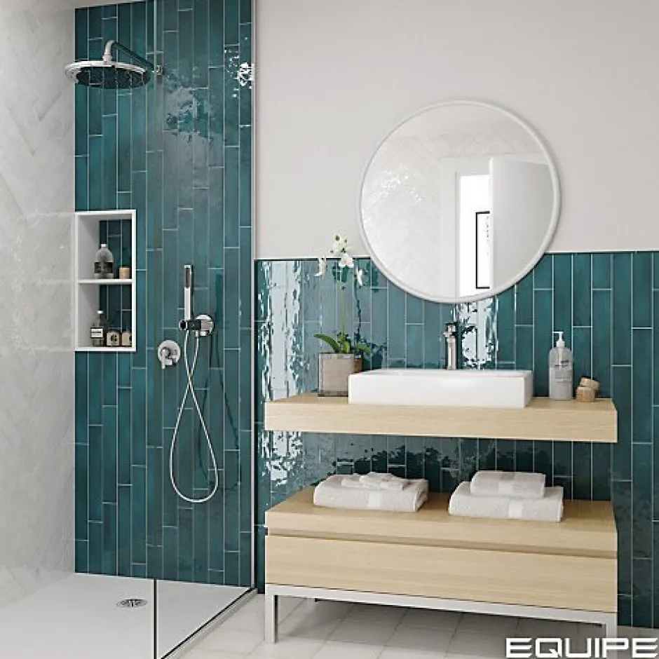Faïence Effet Zellige Bleu Canard MANACOR 6,5×40 glacier – Les Carreaux de Jean-Gioia Materia New