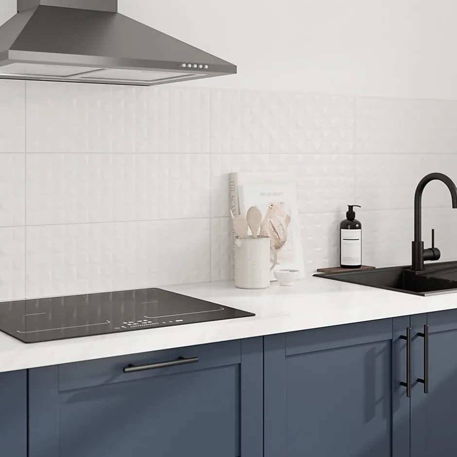 Faïence murale blanc brillant avec relief L.60 x l.20 cm x ép.8,3 mm – lot de 12, GoodHome Plain