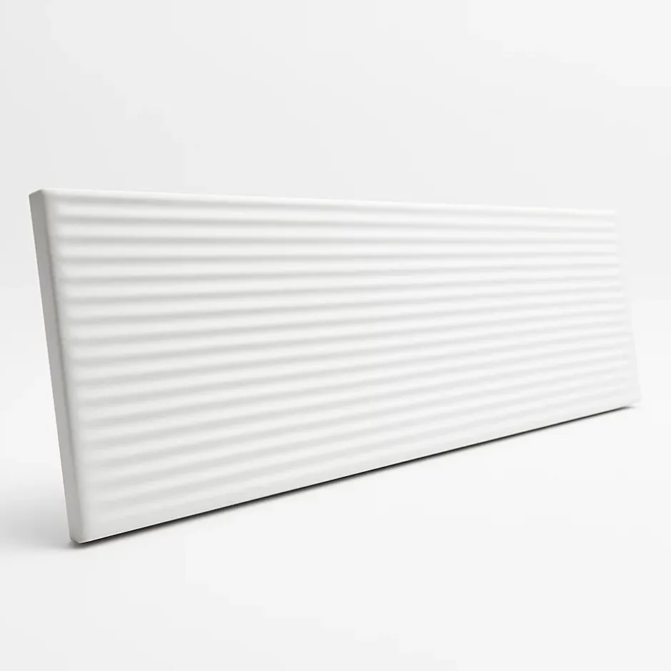 - Carrelage mural intérieur décor relief “linéaire” coloris blanc cassé mat. Petit format tendance déco. Bords droits.