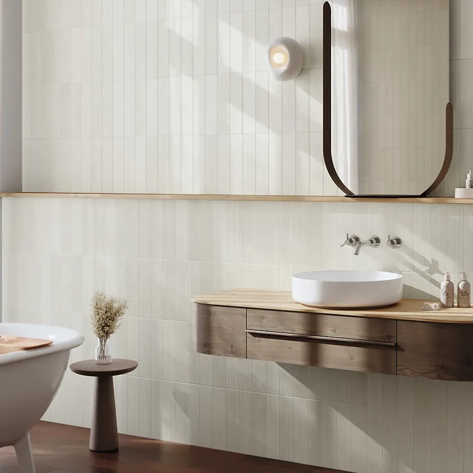 Apportez une touche d’élégance moderne à vos murs avec la faïence murale Minerra. Son relief linéaire tendance et sa teinte blanc cassé mat créent un décor subtil et raffiné, idéal pour sublimer toutes vos pièces intérieures : cuisine, salle de bain, toilettes ou encore crédence décorative. Pensée pour les amateurs de décoration contemporaine, cette faïence petit format offre de multiples options de pose et de calepinage pour personnaliser votre espace à l’infini. Ses bords droits, son aspect légèrement dénuancé et sa finition satinée apportent relief et profondeur tout en conservant une ambiance douce et épurée. Fabriquée en pâte blanche de haute qualité, la faïence Minerra est simple à entretenir et assure un rendu durable au fil du temps. Produit idéal pour réaliser un mur décoratif unique avec un maximum de style.