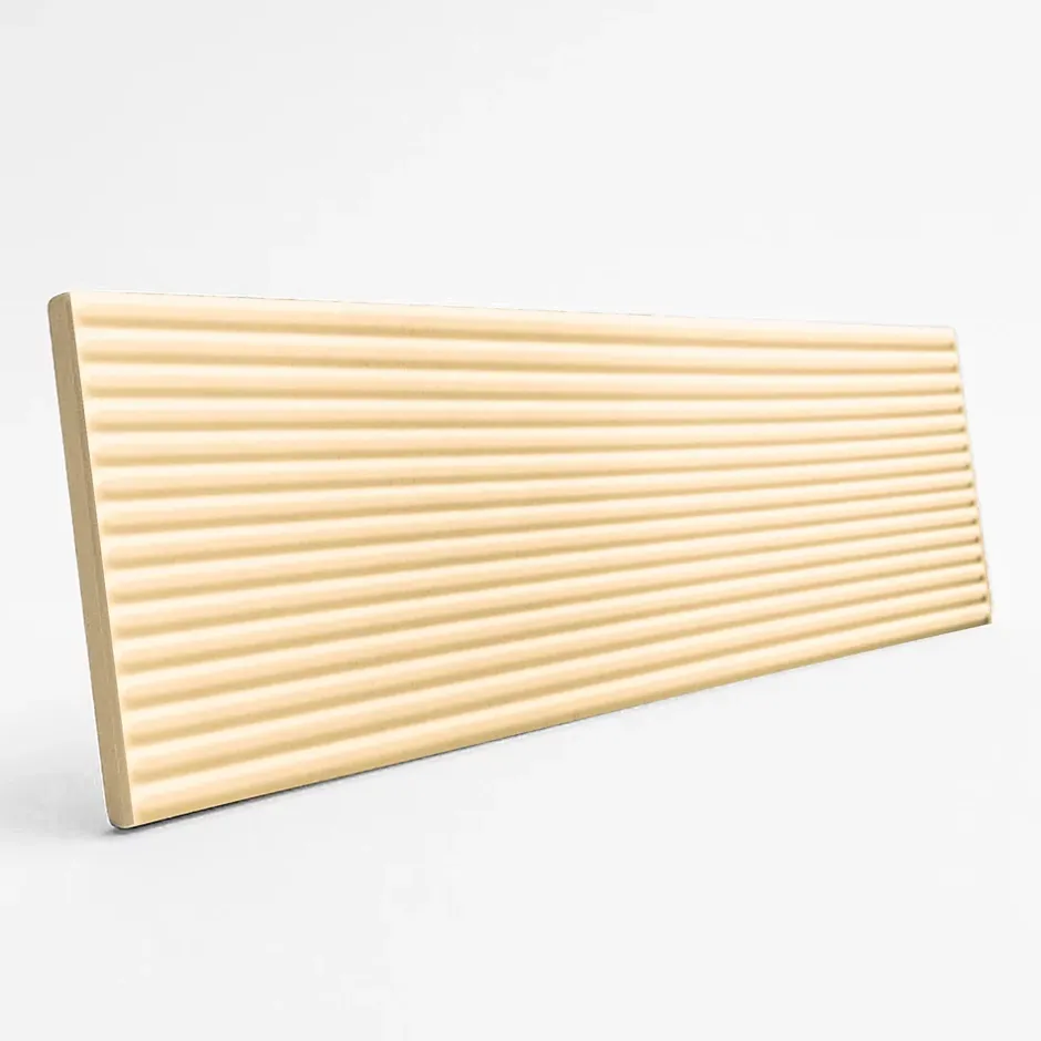 - Carrelage mural intérieur décor relief “linéaire” aspect terre cuite coloris beige clair mat. Petit format tendance déco. Bords droits