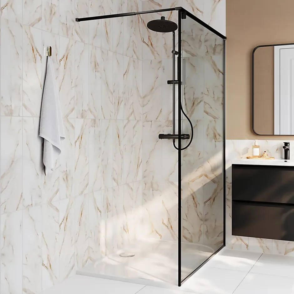 Carrelage mural effet marbre blanc et doré brillant L.60 x l.20 cm x ép.9,4 mm – lot de 9, Goodhome Aruma