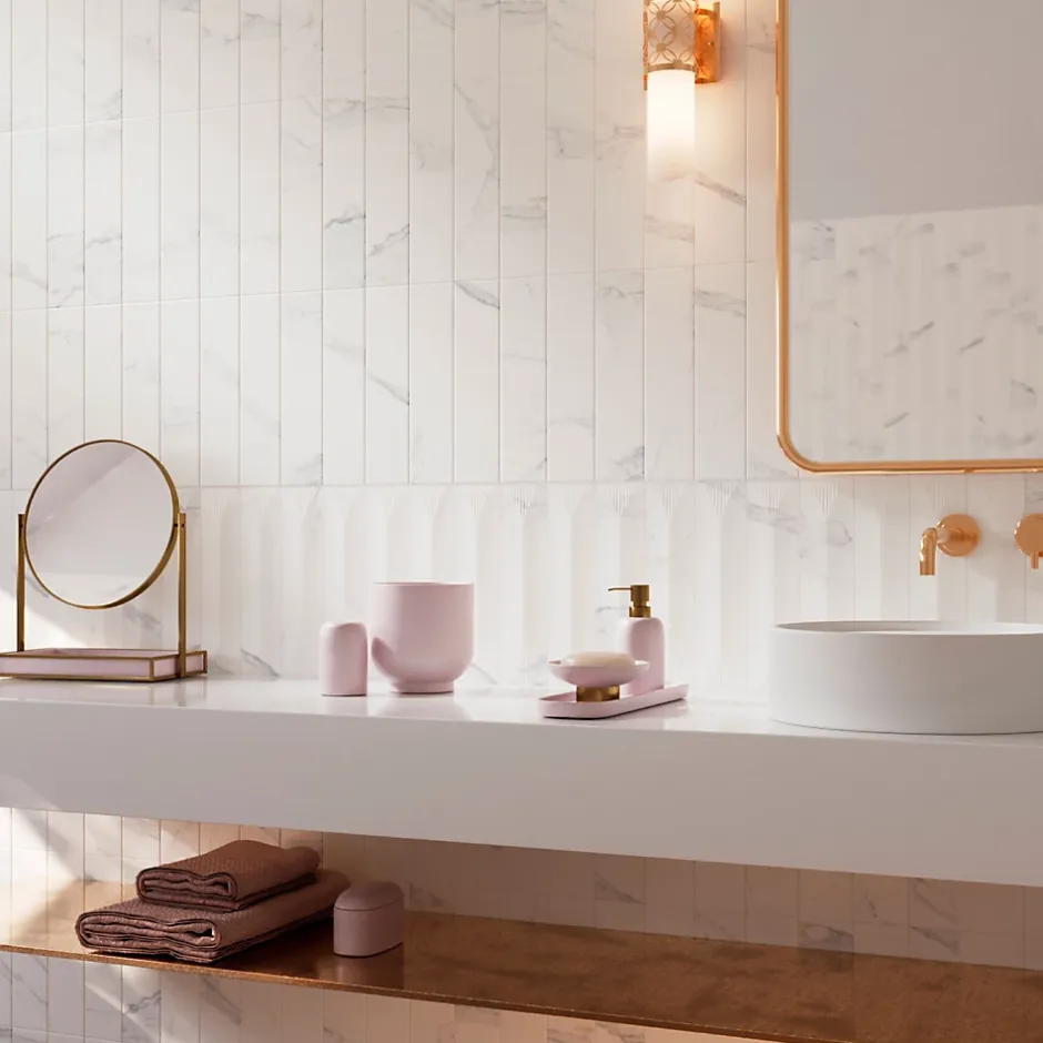 - Carrelage mural intérieur aspect marbre Calacatta mat petit format. Tendance déco