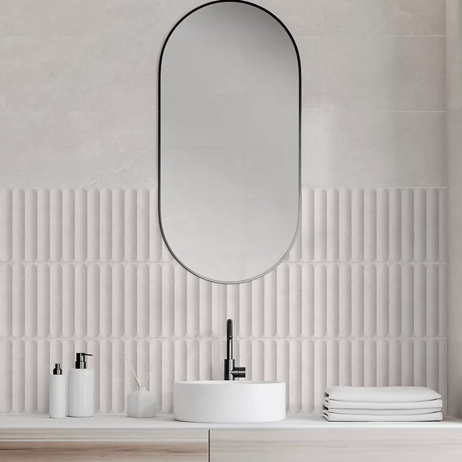 Faïence murale intérieur blanc mat effet cannelures L.90 x l.30 cm x ép.10,8 mm, Astor