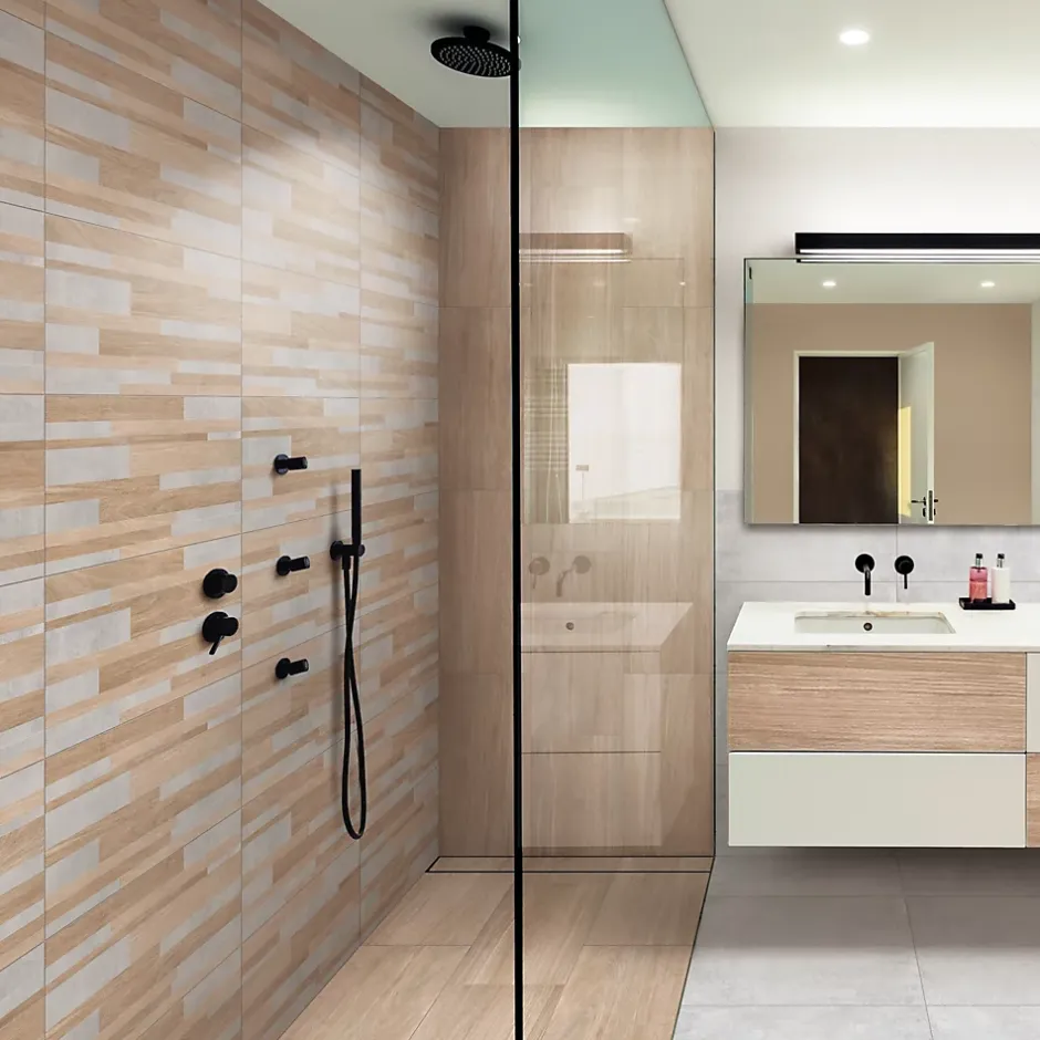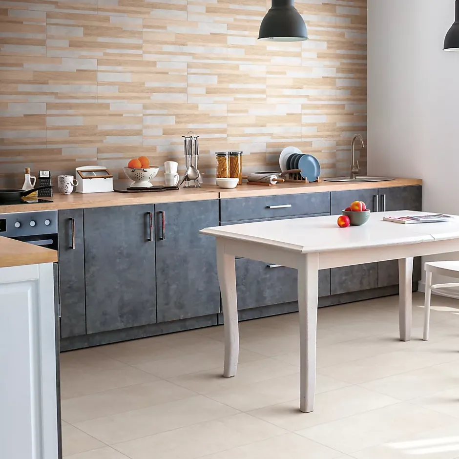 Le carrelage mural multicolore Tendance apporte une touche naturelle et chaleureuse à votre intérieur. Avec son effet bois brut et sa finition mate, il imite à la perfection l’aspect du bois tout en offrant la résistance et la facilité d’entretien du grès émaillé. Idéal pour habiller les murs de votre salle de bain ou de votre cuisine, ce carrelage rectangulaire de 30 x 60 cm se pose facilement et s’adapte à tous les styles de décoration. Chaque pack contient 1.44m² de carrelage fabriqué en Italie, avec 3 designs différents pour un rendu unique.