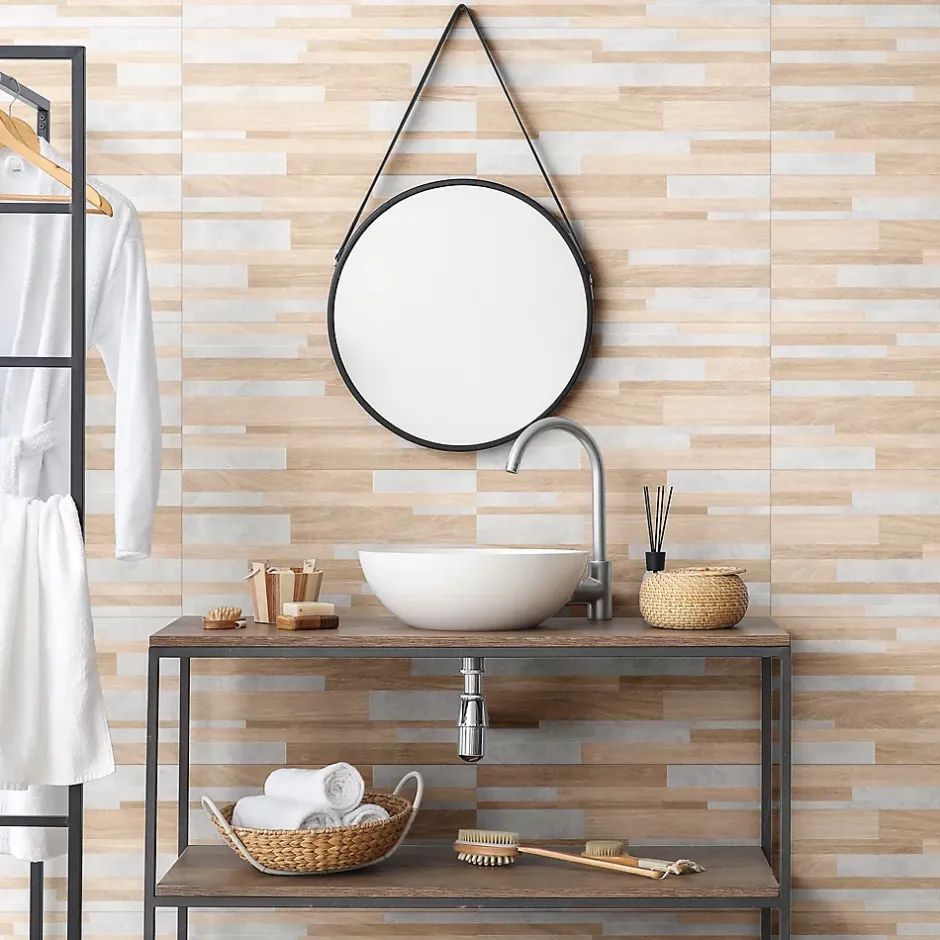 - Le carrelage mural Tendance offre un esthétisme unique avec son effet bois brut, apportant chaleur et authenticité à votre intérieur.