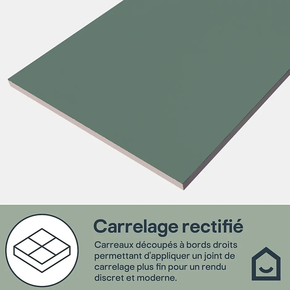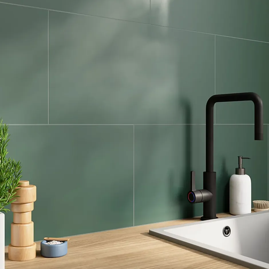 Le carrelage intérieur mural en grès émaillé satiné vert Colville (l) 300mm x (L) 600mm offre une finition satinée douce qui apporte chaleur et sophistication à tous les espaces. Avec ses bords rectifiés, le carrelage Colville garantit un ajustement précis et un rendu élégant et harmonieux qui sublime toutes les pièces.