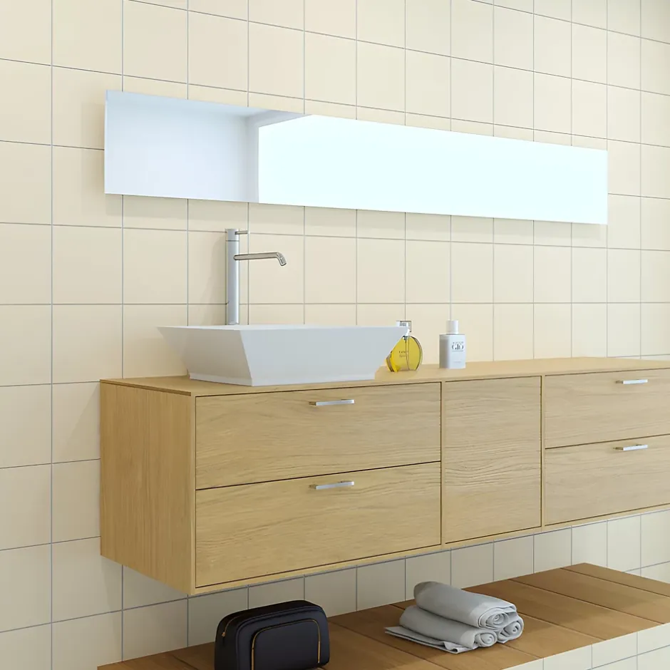 - Carrelage mural/faïence intérieur uni aspect satiné surface lisse coloris beige/crème, bords droits.