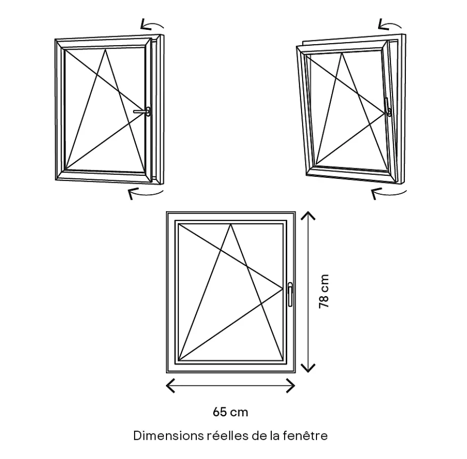 - Dimensions réelles hors tout : l.65 x h.78 cm