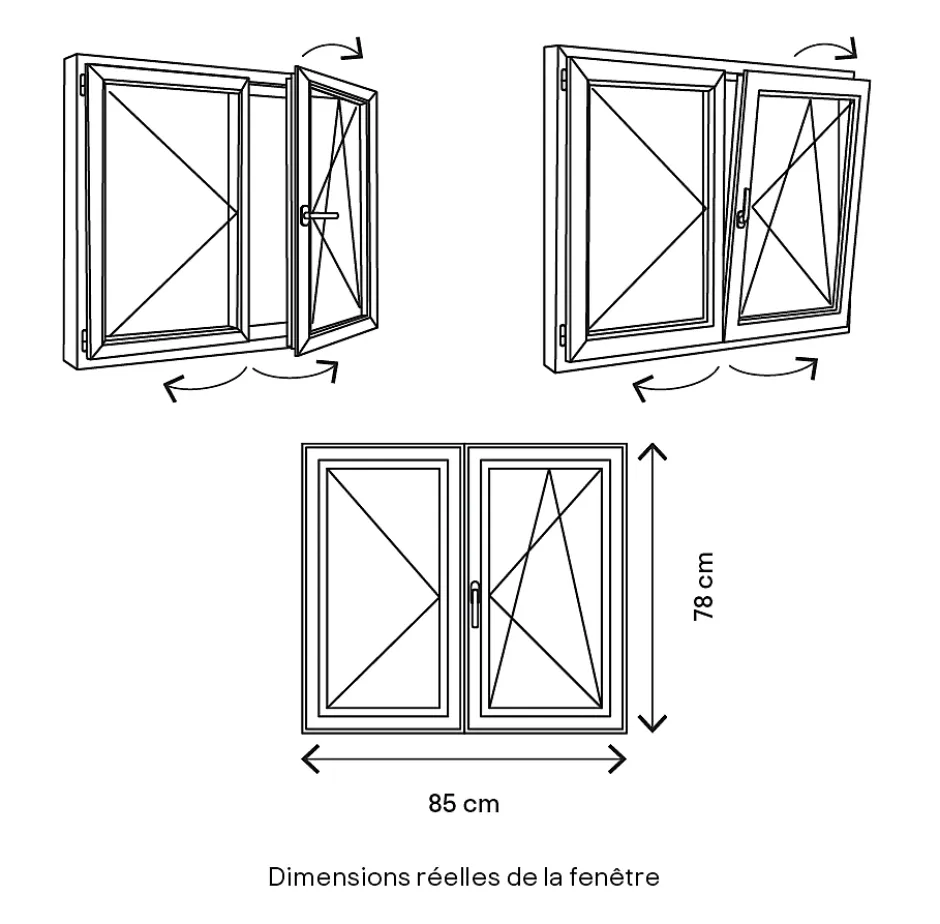 Fenêtre pvc 2 vantaux oscillo-battant GoodHome blanc – 80 x h.75 cm – Uw 1,2