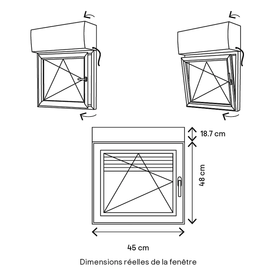 - Le cadre universel permet à la fenêtre de s’adapter à tout type d’installation, et de compenser les variations de dimensions avec votre ouverture