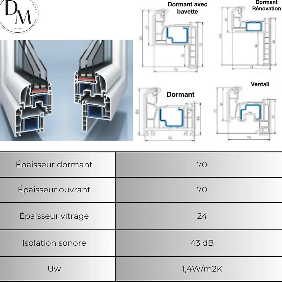 Fenêtre PVC deux cadres double ouvrant – RAL 9016 | PROFILINK Premium – 70 mm | 5 chambresLa fenêtre PVC à deux cadres double ouvrant en RAL 9016 (blanc) est fabriquée avec la gamme PROFILINK Premium, un système de profilés PVC 70 mm à 5 chambres, conçu pour offrir une excellente isolation thermique et phonique et une très bonne tenue dans le temps. Son double ouvrant améliore la ventilation et facilite l’accès au nettoyage, tout en conservant une esthétique moderne et épurée.Ce système se distingue également par ses options de pose adaptées aux chantiers neufs comme à la rénovation :•Battant Rénovation : remplacement d’anciennes fenêtres sans dépose du dormant existant.•Battant Zet : pose sans travaux de finition intérieure, pour un chantier plus propre et plus rapide.Important : si vous souhaitez un profilé Rénovation, merci de nous le mentionner après votre commande.Points forts•Profil PVC 70 mm – 5 chambres : isolation renforcée•Double ouvrant : confort d’usage, ventilation optimisée•Options de pose standard / rénovation / Zet•RAL 9016 : finition blanche lumineuse et intemporelle•Matériaux durables : résistance aux UV et aux intempéries•Fabrication sur mesure selon vos dimensions et configurations