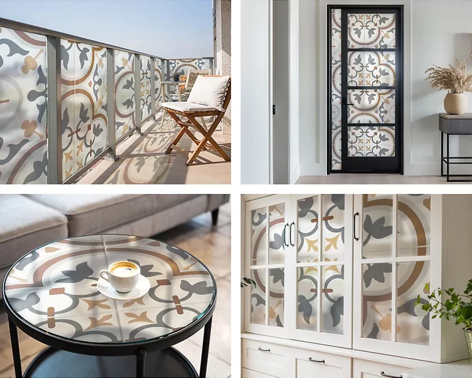 Film Ddépoli Autoadhésif 100x146 cm d'Intimité pour Fenêtre Rayures Ornements Carrelés 1 rol.-Wallfluent Sale