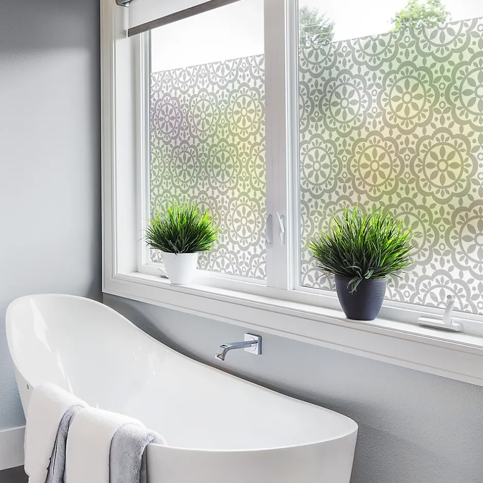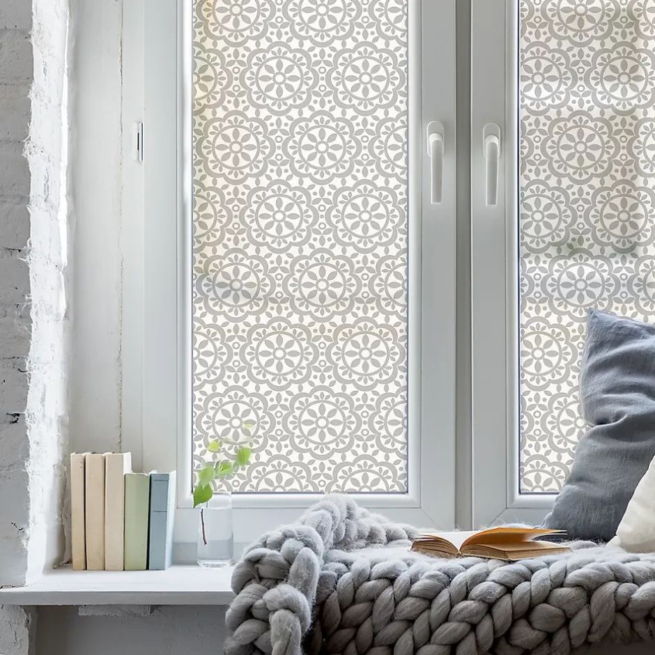 Taille du produit : 40 x 100 cm Sticker occultant pour vos fenêtres et votre salle de bainCe sticker représente les rosaces grisesCe sticker occultant et privatif pour fenêtre mesure H40 x L100 cmVitrophanie – Sticker dépoli translucide privatif pour vitres et fenêtres Bubble free – Pose facile sans bulle d’air Ce sticker occultant dépoli laisse passer une lumière douce et diffuse pour plus de confort dans votre intérieur Il limite la visibilité à travers les vitres et permet ainsi d’obtenir sécurité et intimité, tout en décorant votre maison Il empêche aussi les vis-à-vis de jour comme de nuitUne fois appliqué sur une fenêtre, ce sticker : – absorbera 15 % de la lumière visible – transmettra 85 % de la lumière visible Conseil pour la pose: 1/ Découper la longueur nécessaire (prendre un peu plus large) 2/ Humidifier fortement la vitre 3/ Décoller le sticker du papier support et le positionner sur la vitre humide 4/ Racler du centre vers l’extérieur pour retirer l’eau et les bulles d’air 5/ L’humidité permet de le déplacer pour une position parfaite 6/ Laisser sécher 7/ Couper au cutter les bandes qui dépassent de la vitre Durée de vie: 5-8 ans Où coller cet autocollant déco occultant ? Les idées Déco Ambiance Sticker: Ce sticker occultant trouvera facilement sa place sur les baies vitrées, les fenêtres de salle de bain, cuisine, toilette, chambre, et autres fenêtres de la maison, les rambardes vitrées extérieures et intérieures, et même sur les portes de douche Ce sticker occultant peut être aussi utiliser en milieu professionnel: pour les vitres de bureaux, salle d’attente, vitrines de magasin, ou toute autre vitre extérieureL’adhésif occultant fenêtre vous permet également de préserver votre intimité lorsque vous êtes à l’intérieur de votre maisonLe sticker occultant vitre est idéal posé sur une baie vitrée pour masquer le vis à vis dans votre bureau Les stickers occultants fenêt