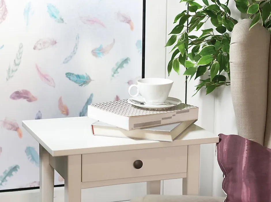 Le film décoratif static Premium d-c-fix® permet de personnaliser ses fenêtres, portes et baies vitrées, parois de douche, table en verre ou toute autre surface vitrée lisse.