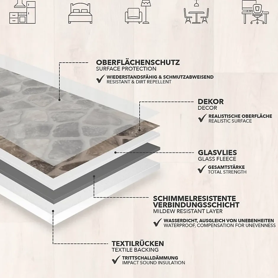 Grâce à sa surface simple, le revêtement de sol CV, disponible à la coupe, est facile à entretenir et peut être nettoyé très rapidement. Si nécessaire, il suffit de l’aspirer ou de l’humidifier et, éventuellement, de l’essuyer avec un produit de nettoyage adapté aux revêtements de sol en vinyle. Les revêtements de sol CV sont disponibles au mètre et sont coupés par nos soins, individuellement et avec précision, à la taille que vous souhaitez et emballés de manière sécurisée pour le transport. Cette personnalisation de nos produits en rouleau rend l’installation rapide et facile dans les petites et les grandes surfaces.